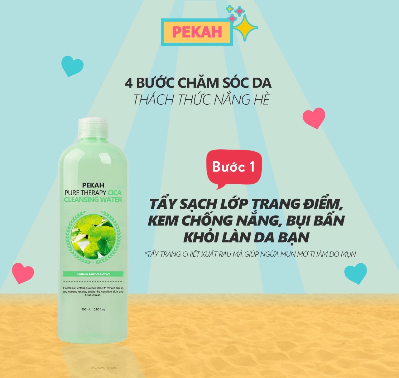 1. Nước tẩy trang DA MỤN rau má Pekah: Thành phần chính là Rau má kháng khuẩn, cải thiện mụn giúp làm sạch sâu lỗ chân lông, Glycerin duy trì độ ẩm hạn chế tình trạng khô rát, loại bỏ dầu nhờn, kháng viêm và có thể làm sạch các sản phẩm makeup chống nước (mascara, eyeliner,…)