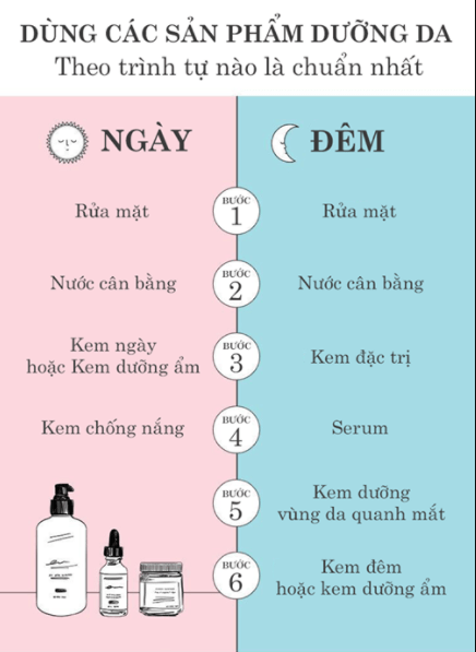 Thông thường, mỗi cô gái sẽ có một quy trình chăm sóc da hàng ngày riêng vì mỗi người sở hữu 1 loại da khác nhau . Nhưng nhìn chung sẽ đều các bước cơ bản sau :